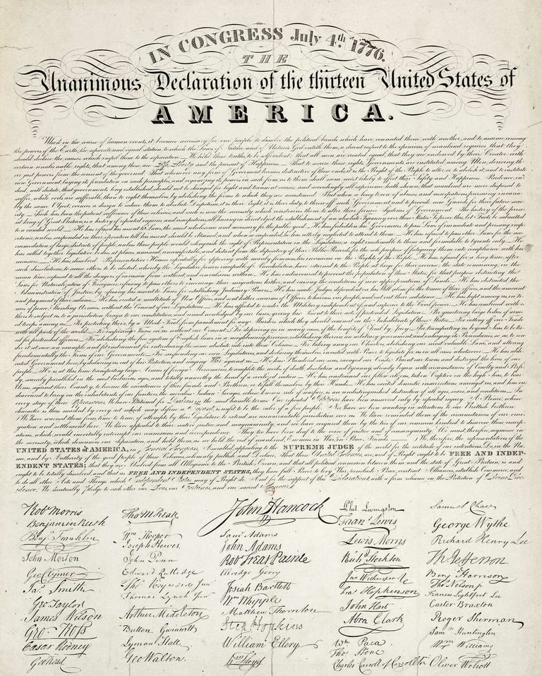 Face à cette oppression, les colonies s’unirent progressivement – à l’exception initiale de la Géorgie. En 1774 puis 1775, les représentants des colonies se réunirent alors au Congrès de Philadelphie, où fut rédigée une déclaration de droits affirmant les libertés et les revendications des colons. Cette mobilisation conduisit, le 4 juillet 1776, à la Déclaration d’indépendance, marquant la rupture officielle avec la Grande-Bretagne.