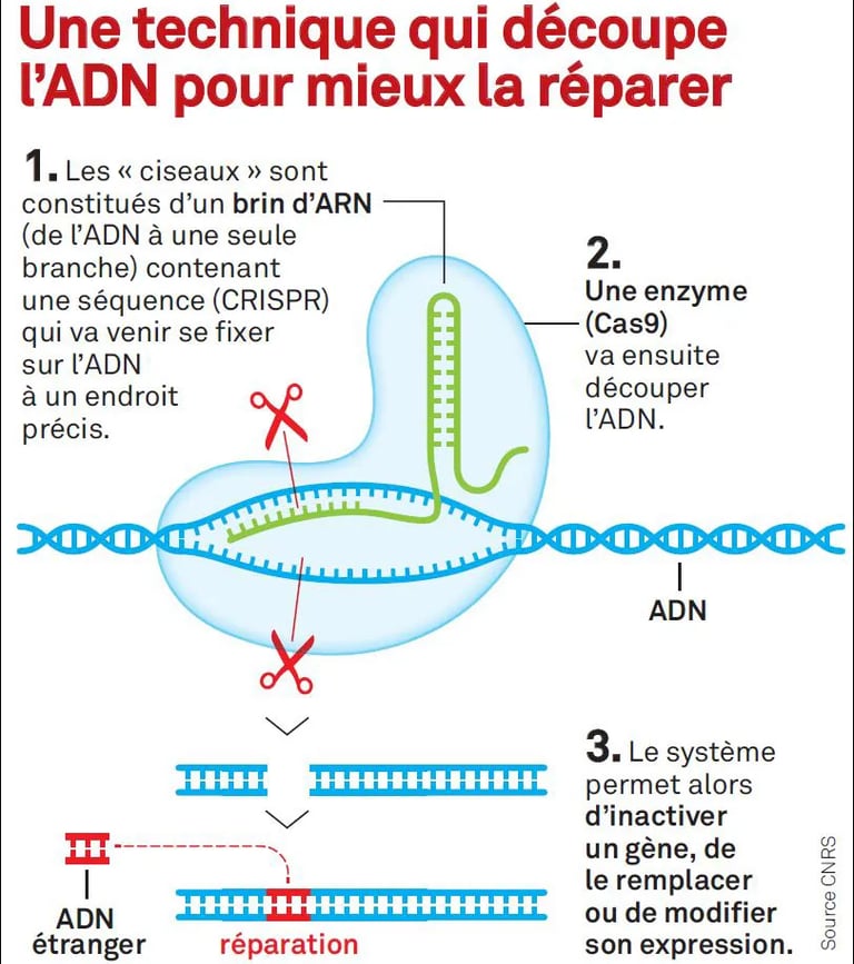 Pour réaliser cette modification, ils ont utilisé l'outil CRISPR-CAS9. Il s'agit de « ciseaux moléculaires » permettant de modifier une ou plusieurs séquences génétiques. Les noyaux de ces cellules embryonnaires ont ensuite été implantés dans les ovules de plusieurs chiennes domestiques.