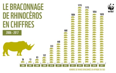 Aujourd’hui, la plupart des rhinocéros ne survivent que dans des réserves protégées. On sait, par exemple, que le rhinocéros noir est passé de 65 000 individus dans les années 1970 à environ 5000 aujourd’hui.